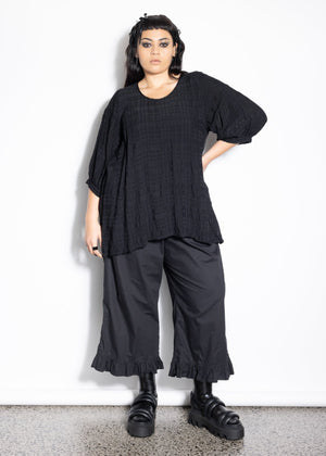 Outfit details | Ellen wears a size L Blouse in Black Check with a Buddy Cami and our new Frill Pants (L) in Black (Coming Soon).