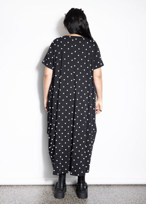 After the runway success of our Dom Tee we decided to make a dress version. The front rouching detail gives a gathered effect through the center of the dress adding extra movement throughout. It sits in nicely through the sides of the bodice giving good shape with a rounded skirt shape.