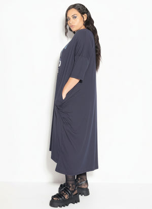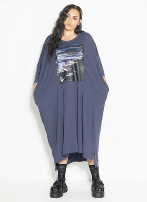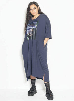 This was designed with ease of wear and summer comfort in mind. We have made a casual dress with the square tee shirt shape. We have added this fun abstract techy print to give it that something extra. A one and done shape that has a cool touch and won't cling.