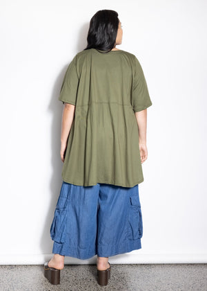 This cotton tee shirt has it all. A subtle A-line shape, pockets, nice shoulder line and scoop neck.