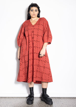 The Ronnie Dress has been made in some beautiful fabrics we have sourced ourselves. Cotton is perfect for summer and this dress has plenty of detail to be a whole outfit on its own. A subtle A line dress shape that is set off by the gorgeous 3/4 lantern sleeve.