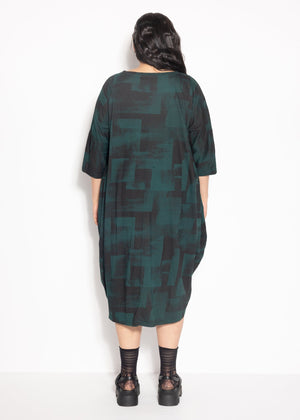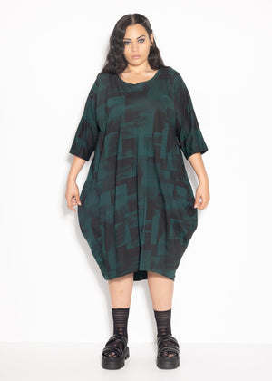 I designed this hand screen printed fabric and put it into our Sam Dress. This is a relaxed tee shirt style which fits into your body at the bust and waist with a roomy fit through the arm and middle. It has an elbow length grown on sleeve and rounded side seam.