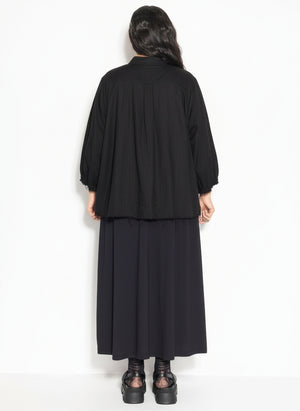 Details | Classic collar, button through front, patch pocket and side seam pockets, elbow length sleeve, elasticated cuff with raw finishing, raw finish on hem