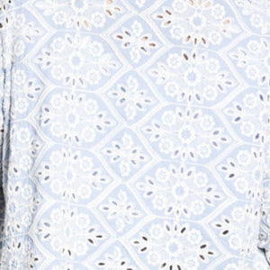 Fabric Description | Cotton base cloth with heavily embroidered finish and eyelet details.
