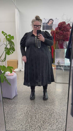Outfit details | Ellen wears a size M Zippy Dress with the Black Midi Slip underneath.