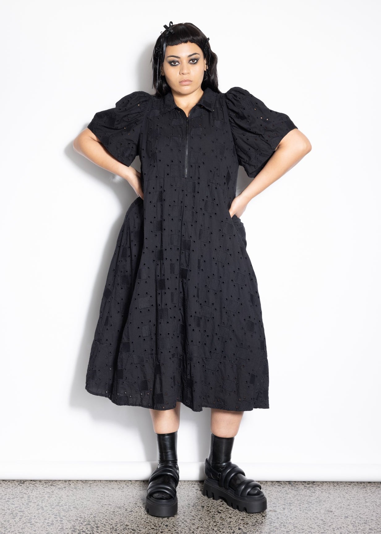 The Zippy Dress is such a lovely summer style, the Broderie Anglaise is a custom design and colour especially for LALA. There's something about the toughness of the metal zip and the soft embroidery of this fabric together that gives it perfect balance.