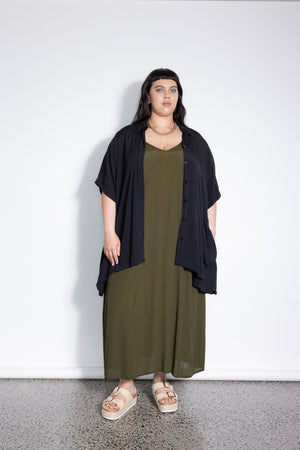 The Mara Shirt is a traditional short-sleeved shirt made in a soft viscose, so it drapes beautifully on the body. It is the perfect lightweight arm cover.