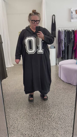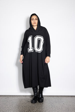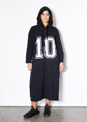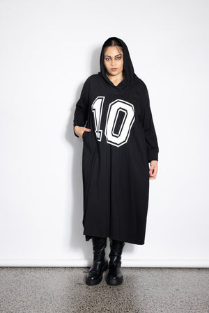 We love this comfy sportswear inspired hoodie dress. The #10 is to give it a sporty feel but also to celebrate 10 years in business!