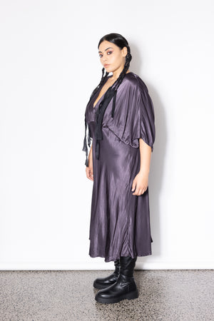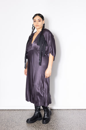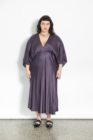 The aubergine viscose has a beautiful satin which slips easily over the body and a cool touch.