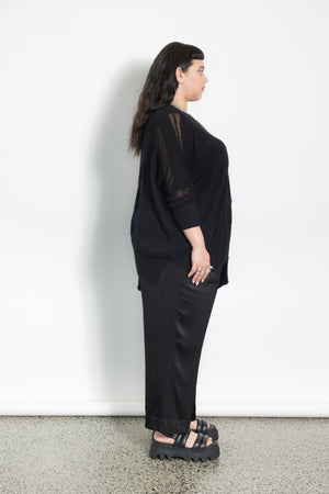 The neckline, cuff and hem are all finished with rib.