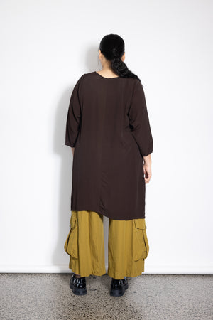 We have made a deceptively simple top with a 3/4 sleeve which we are sure you will reach for on repeat. The A-Line shape works for so many bodies with out being bulky. The magic of this top is really in the Crepe De Chine fabric that grows (just a wee bit) as you wear it and moulds to your body with that bit of give which makes it so comfy. This top hits at just the right length so you can wear it on its own. A no brainer for winter and in this seasons key colours.