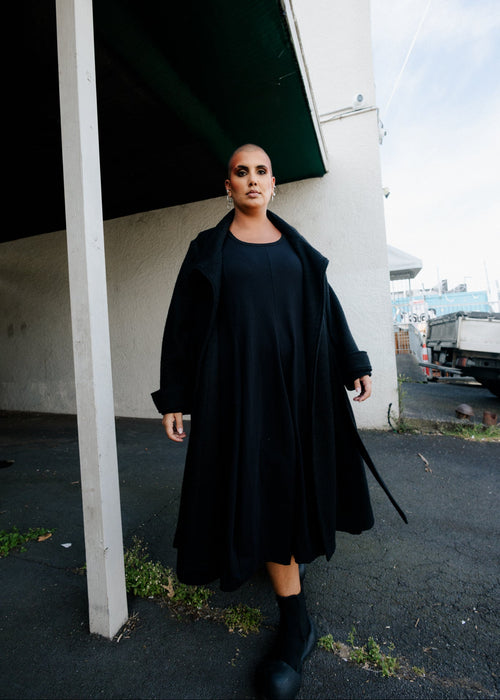 We always talk about how we LOVE to be swathed in fabric - how luxurious and calming it feels to have something that fits with room to spare! This coat is for the depths of winter - an enveloping wrap coat with deep pockets and subtle military details. A sweeping topper for your go-to winter needs. This has a high wool content and soft bobble texture.