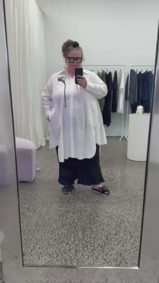 We have restocked our popular Gored Shirt with a new graphic print detail.  This is a shirt made the LaLA way - with shaping through the bust and a gore at the side seam for that deconstructed feel, while adding more movement through the body. We have given it an exaggerated shirt hem for that fun oversized appeal while keeping it fitted in all the right places. A handy layering piece that looks great on its own too.