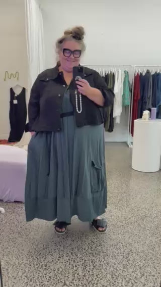 This is our take on a denim jacket. It's such a cool look and the cropped length works really well over dresses and longer line tops.  We have given this jacket the LaLA treatment by adding side splits and gentle stretch to make for easier movement and a nice line - as it enables us to have less fabric around the body.  Featuring classic denim finishes like jean buttons, collars, and denim-style panels and topstitching.