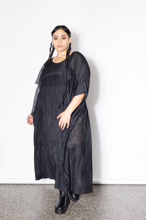 This is such a beautiful semi transparent dress in such a fashionable silhouette. I played with the shape to make it work for my body, the gathers through the front and back create a beautiful long line which work so well. I'm really looking forward to wearing the Lena Dress because of the relaxed fit, pockets and a longer length. I love all the details in the transparent fabric like the wide hem and cuff.
